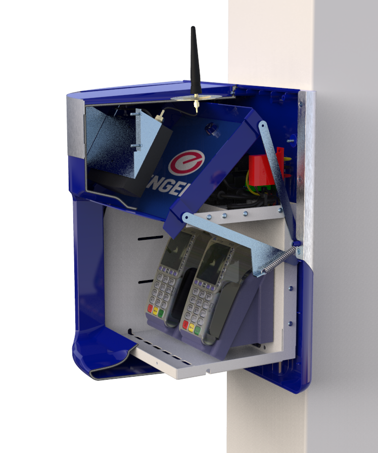 The payment terminals are used by the fueling attendants on the fueling stations' forecourt to accept payment from customers for fuel and other automotive consumables. Because the terminals are used outdoors, the housing needed to protect the payment terminals from rain and dust when not in use, while allowing easy access to retrieve them and put them back into the housing. A lockable door was required on the front of the housing to not only protect the payment terminals from the elements but also from theft during the early hours of the morning or when some fueling stations are not open for service.