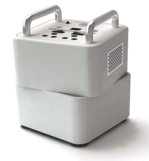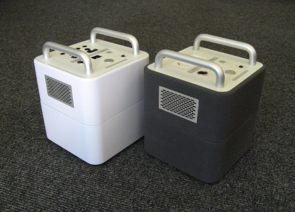 The bottom of the cube housed the batteries while the top housed the inverter electronics. The enclosure was made from a combination of GRP and sheet metal to suite the batch manufacturing volumes required and was offered with two different finishes, a high gloss or super tough velvet coating. The two halves were held together by a mushroom shaped interlocks between the two halves that provided a solid connection to handle the weight of the battery packs. The Power Cube had two anodised aluminium handles for lifting and moving it around which also provided protection for the user interface.