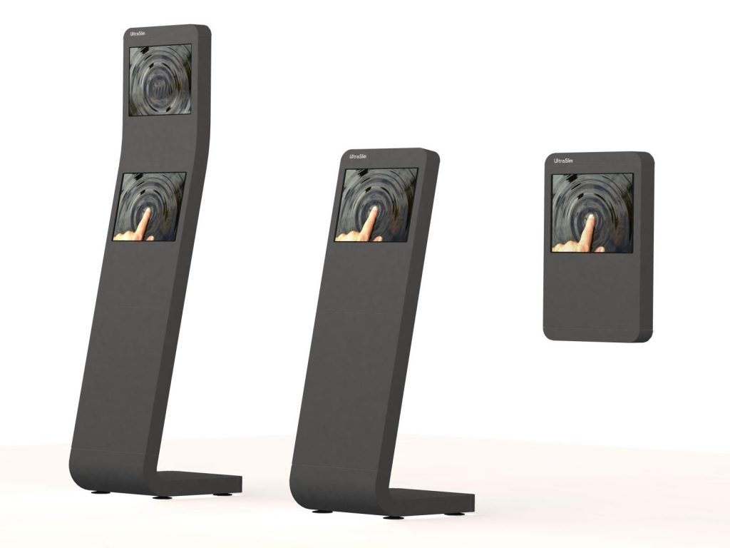 The Ultraslim kiosk is a modular standalone kiosk range that was offered to suit the varying needs of the client. The slim design makes use of low profile computer components to achieve a compact universal form factor. The kiosk's elegant design was made possible through the use of an internal structural framework onto which the various sheetmetal modules could be attached. The design allows for various configurations to be made up while maintaining a simple, clean aesthetic.